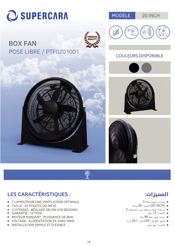 Avec son design premium, sa grande puissance moteur, et ses différentes options de réglage, le SUPERCARA PTF0201001 est une solution idéale pour maintenir un environnement frais et agréable tout au long de l’année.